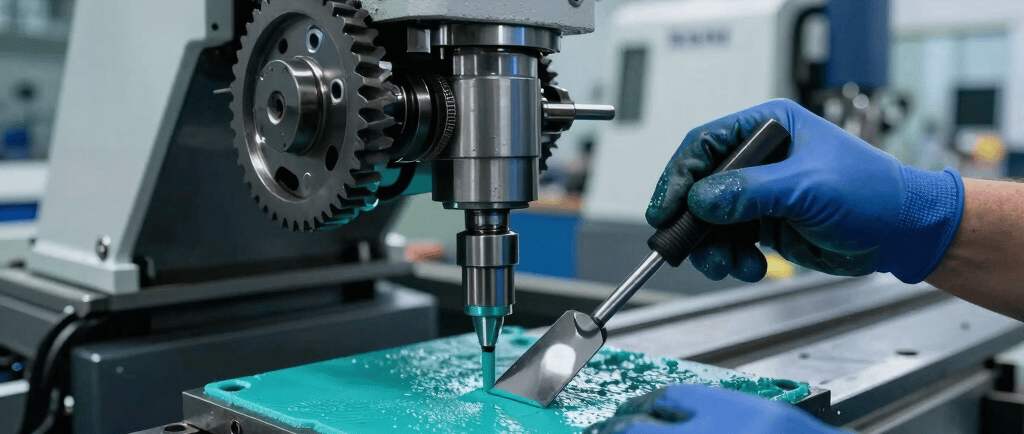 Geometria de Barramento: Aplicação técnica de Turcite-B e raspagem para garantir que seu torno Romi mantenha a tolerância centesimal de fábrica.
